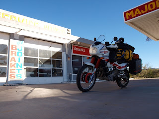 En fin d'après midi, je fais une petite pause dans une station service récemment abandonnée et me dit que d'ici 50 kilomètres je me mets à la recherche d'un camping.